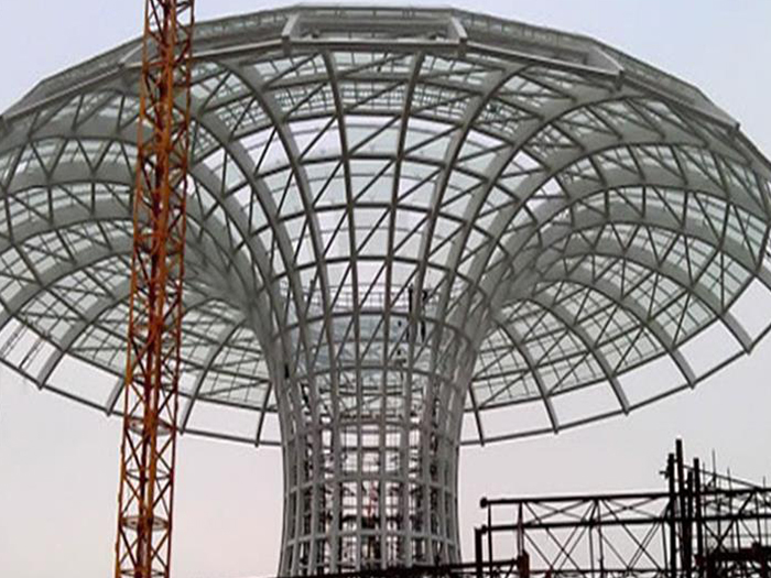 二、球形网架结构因其结构新颖,受力合理,自重轻、用钢量低等优点。如大型体育场馆球形雅安螺栓球网架、公共场馆球形网架、电厂雅安螺栓球网架、水泥工业球形网架、仓储物流球形网架、雅安干煤棚工业球形网架、雅安收费站雅安加油站球形网架、展览中心、影剧院、商场、航站楼、候车厅、工厂雅安车间、仓库、电视塔等球形螺栓球节点网架。国内球形网架结构主要分为:雅安焊接球节点网架及螺栓球节点网架两种。螺栓球节点网架其构件工厂内加工量较大,现场安装便捷,适用于现场工期紧,雅安施工条件、用电量受制约,网架形状复杂、雅安杆件定位困难的异形结构。螺栓球节点球形网架系统基本由雅安杆件、螺栓球、支撑支座等组成。按照节点形式可分为交叉雅安桁架体系、四角锥体系、三角锥体系等。支撑方式多为固定支座支撑。对于大面积、大跨度及有特殊受力或伸缩要求的网架结构可采用橡胶支座、滑移支座、球铰支座等支撑形式,以满足结构自身的受力稳定、均衡,便于内力释放等设计要求。